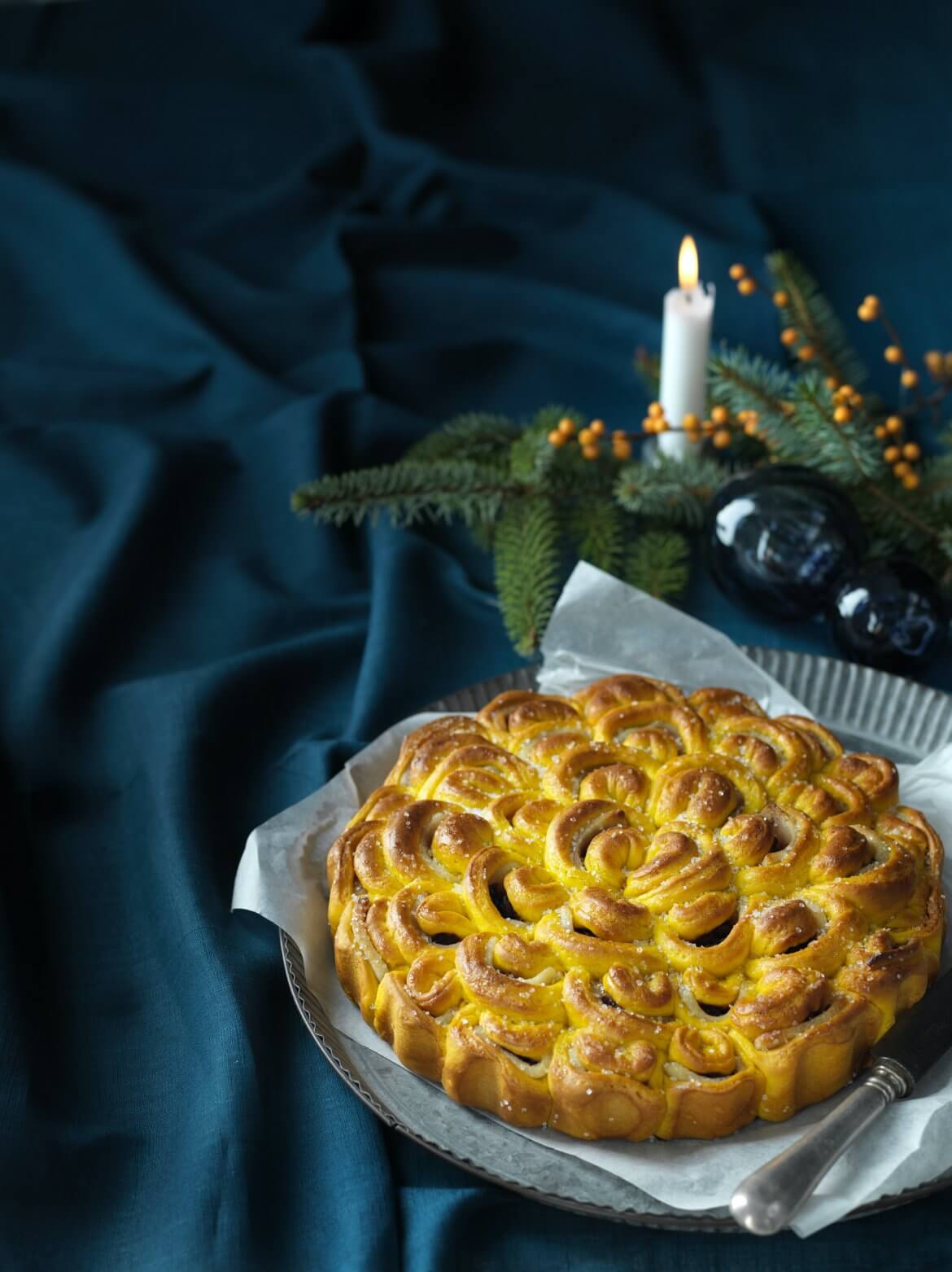 Prøv at bage en luciakage til Luciadag den 13. december. En spændende variant af luciabollerne, bagt med en blød safran-gærdej og fyld af marcipan og syltede kirsebær.